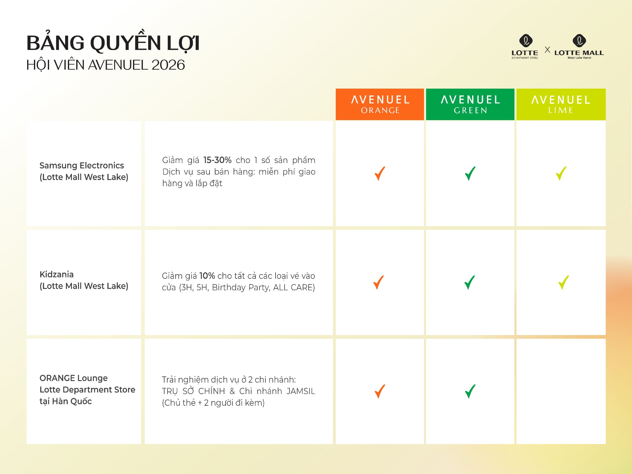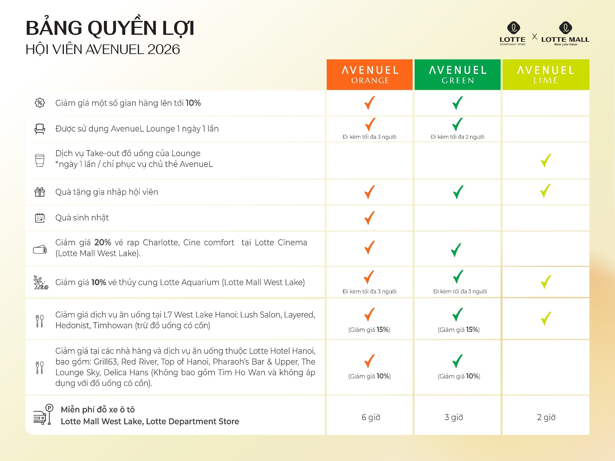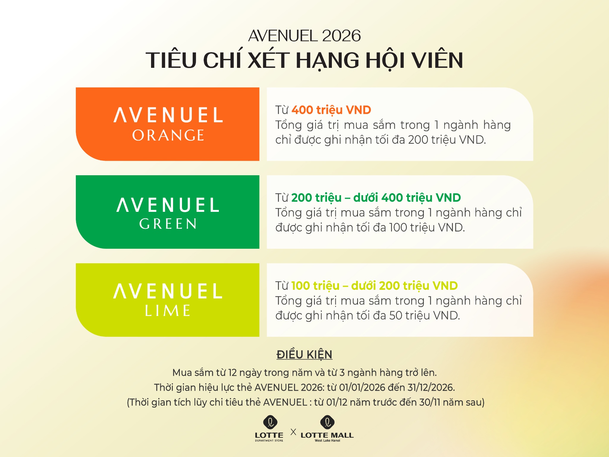 - Tích lũy 1% giá trị hóa đơn khi mua sắm tại LOTTE Department Store (*) 100 VND = 1 điểm